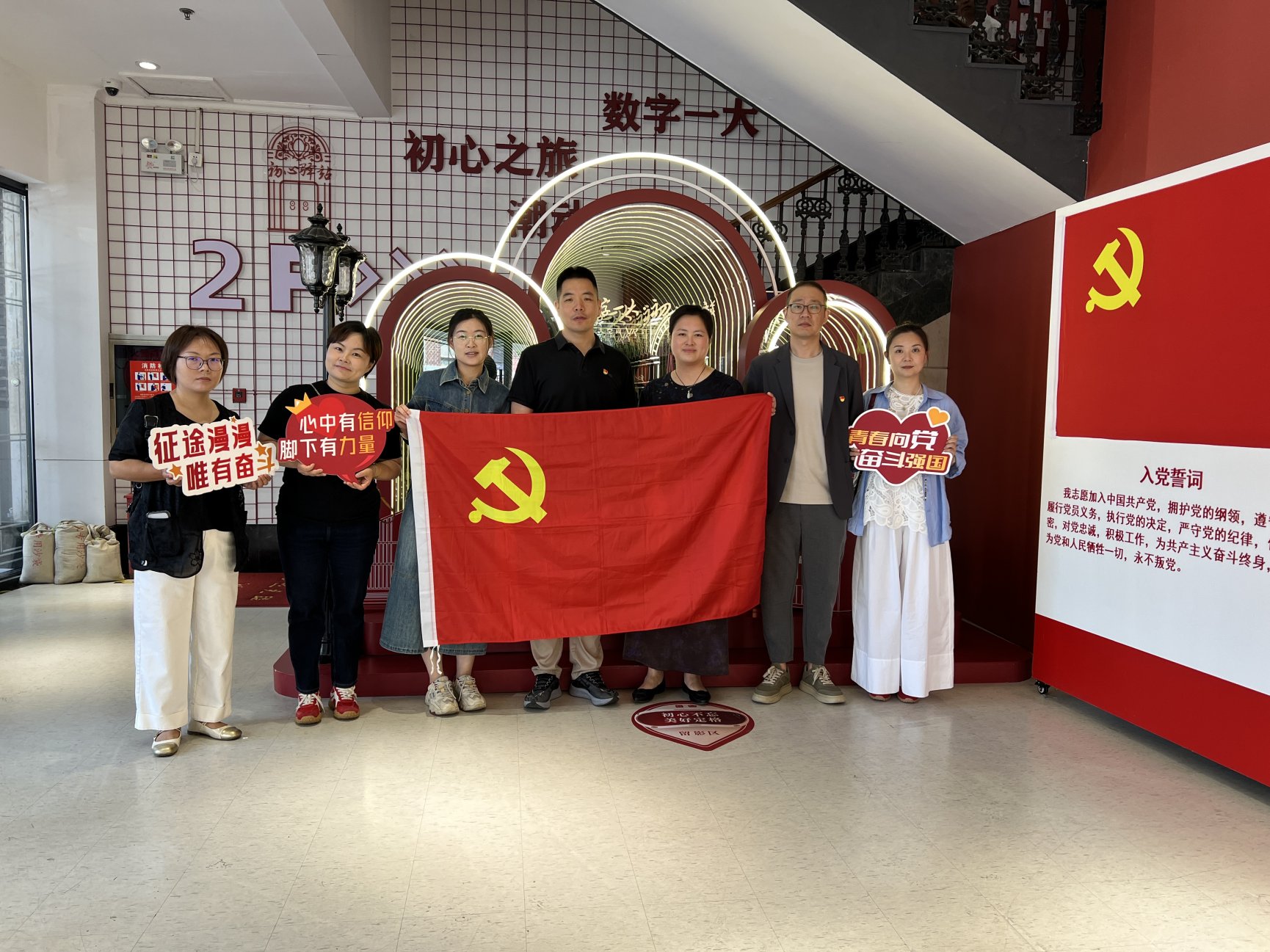 此次活动以数字技术为媒介,构建了 “理论学习 — 场景体验 — 情感共鸣” 的立体化教育链条。通过 VR 技术的情景模拟,党员不仅深入了解了中共一大的历史背景、会议议程及重大意义,更在交互体验中深刻领会了 “坚持真理、坚守理想,践行初心、担当使命,不怕牺牲、英勇斗争,对党忠诚、不负人民” 的伟大建党精神内涵。