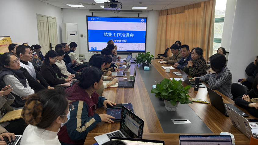 为统筹推进2026届毕业生就业工作,筑牢毕业生高质量就业保障线,12月16日下午,工商管理学院召开就业工作推进会,学院全体教职工参会,院长曹静主持会议。