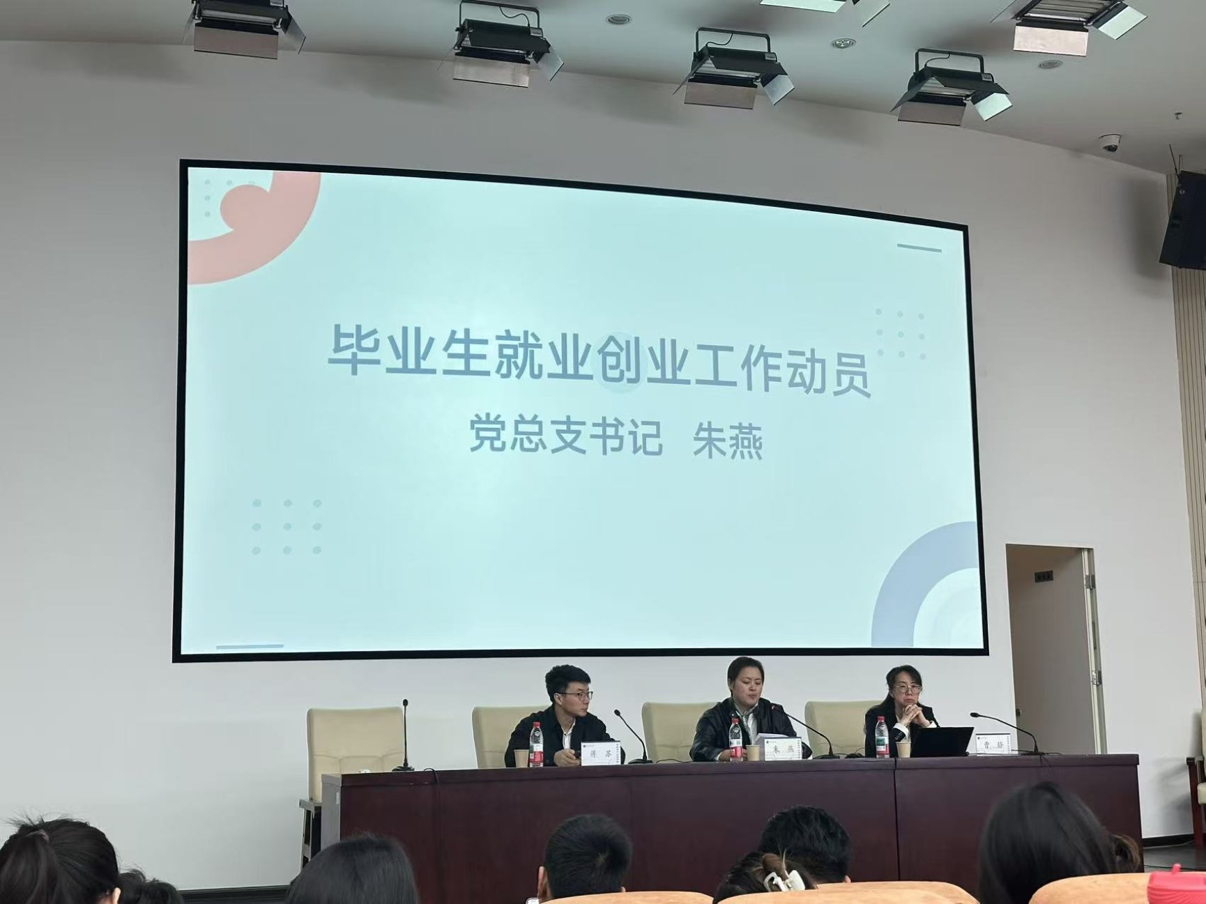 (图为朱燕作就业创业工作动员)