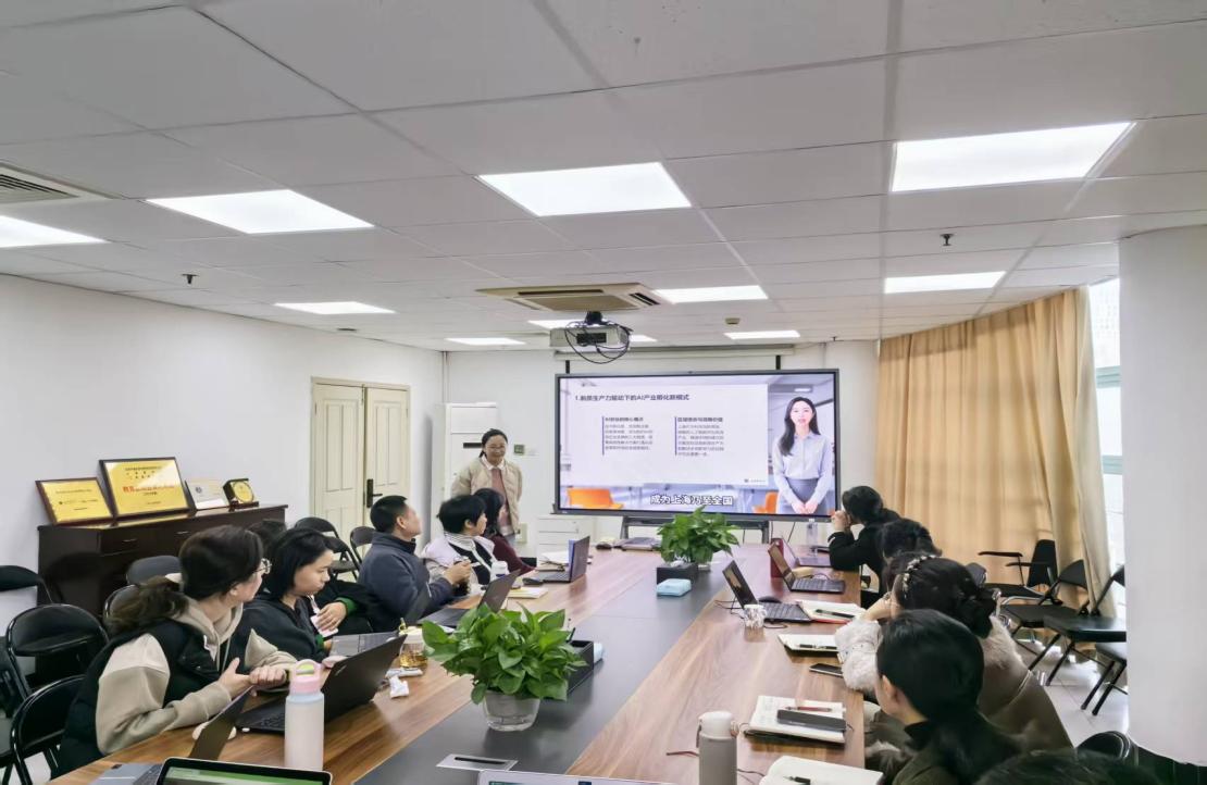 此次主讲教师由市场营销系副系主任亢秀秋老师担任。亢老师重点介绍了如何紧密结合习近平经济思想构建以上海实践为核心的课程思政案例体系,并且以课程团队成员张佳佳老师撰写的商汤科技思政教学案例为例,全面介绍了案例设计思路、资源整合方法以及具体教学应用。内容涵盖案例背景、网络视频辅助资料、案例正文撰写、课堂互动讨论题目设计、教学环节安排、课程课件制作,以及数字人视频的开发与使用等多个方面。此外,亢老师还专门针对数字人生成工具“禅镜”的操作方法进行了现场演示与技巧分享,具体包括数字人形象生成的步骤、语音合成的调整、表情与动作的设定,以及如何将生成数字人视频有效融入实际课堂教学,提升教学效果和互动体验。