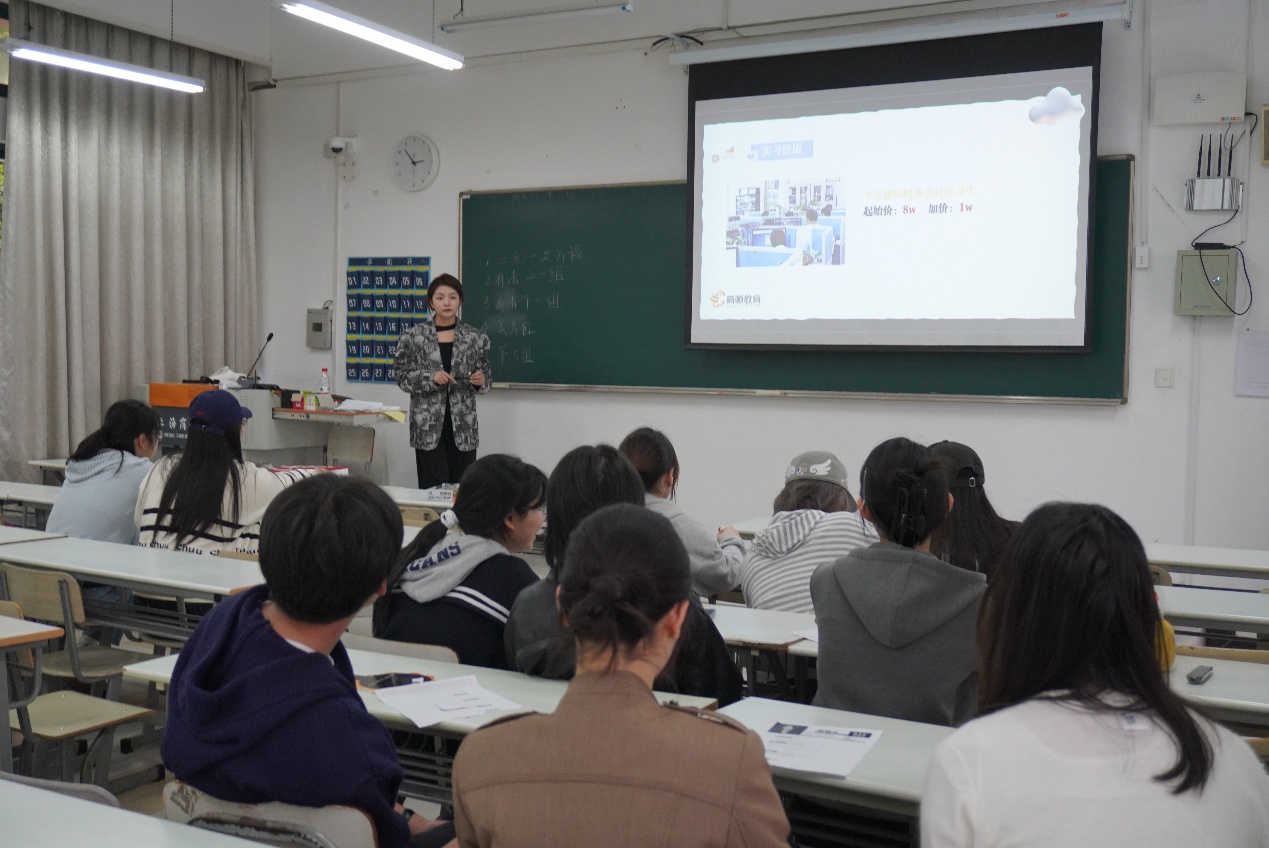 竞拍环节结束后,胡迎新结合竞拍结果进行总结点评,鼓励同学们深耕专业知识、丰富实践经历、积极考取职业证书,不断提升自身求职竞争力。