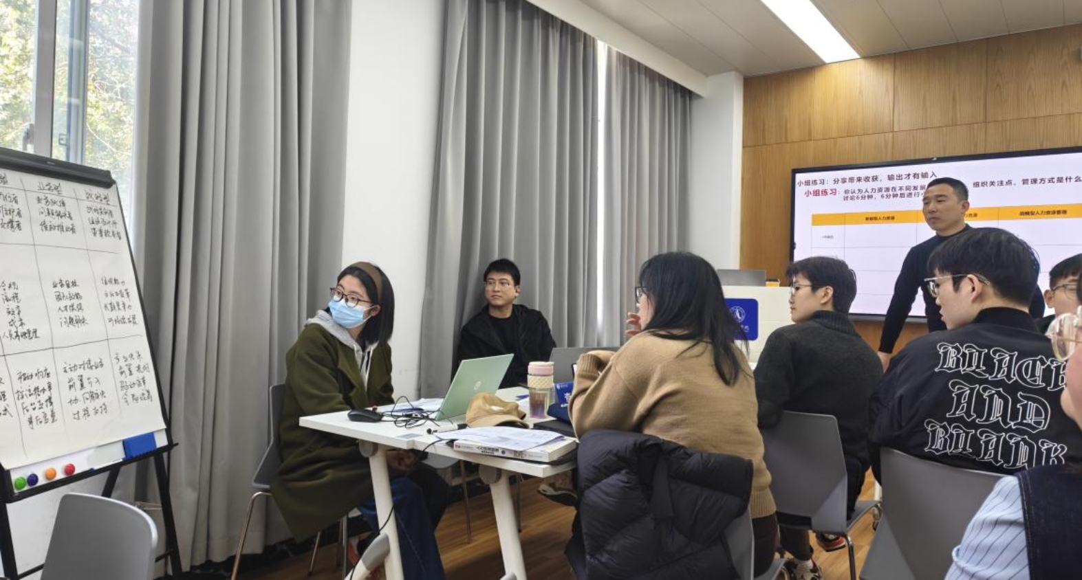 课堂上,MBA学子以小组为单位,围绕真实企业场景展开研讨,运用课程工具拆解战略落地中的人力资源核心问题,研讨适配方案与实施路径。娄振宇先生全程参与各组交流,对分析框架、逻辑思路、方案落地给予精准指导,及时答疑解惑,帮助学员完善思考、形成专业系统的解决方案。现场思维碰撞、氛围热烈,有效提升了学员的问题分析、团队协作与方案制定能力。